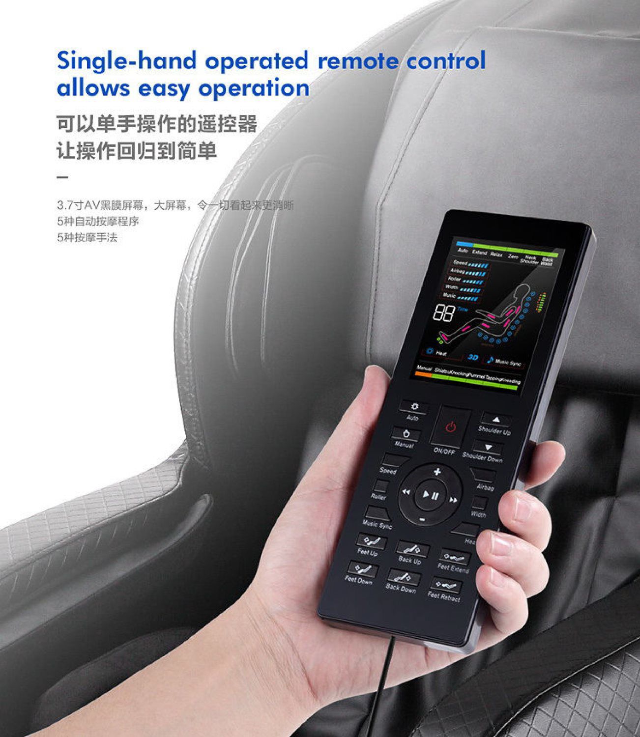 * Music System: Our chairs come with high fidelity speaker systems that allow you to connect your smart phone, tablet or MP3 player to play music of your choice. There is also a mode to sync the massage to your music's tempo.