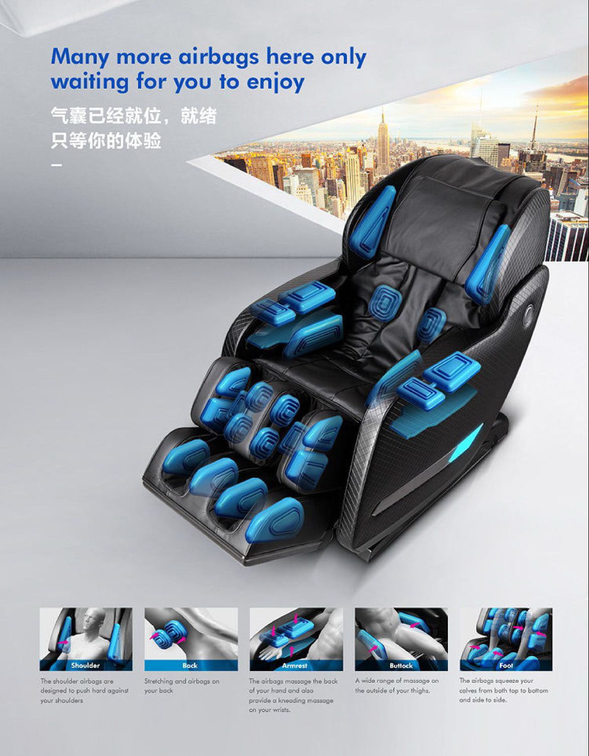 the latest advancement in massage chair technology known as the "L" design massage chair. It starts at the head & travels below the lower back, below the hips, below the butt, below the buttocks, it does the gluts and travels under your thighs. It travels 50.4", nearly double the distance of any conventional S curved massage chair. It also gets closer to the contour of your neck & spine than ever before possible, giving the best deep tissue massage & the best soft Swedish massage too. It massages 55% more body area then ever before possible & provides the very best massage available of any massage chair. Unlike conventional S curved massage chairs, you can use the "L" designed massage chair for hours and not feel uncomfortable or beat up. It also provides a much better massage on the head and neck than a S curve chair because you are getting the massage hands or back rollers doing 5 different strokes on your neck and head which much more closely simulates the hands of a massage therapist. It also has a shoulder press that does an excellent job on the shoulders. Some customers report sleeping comfortably in the "L" design massage chairs. There are only a few of "L" design massage chairs currently available. We believe that you will find our L design massage chairs to be the best quality, design, and value in our industry & also provide the finest massage anywhere.